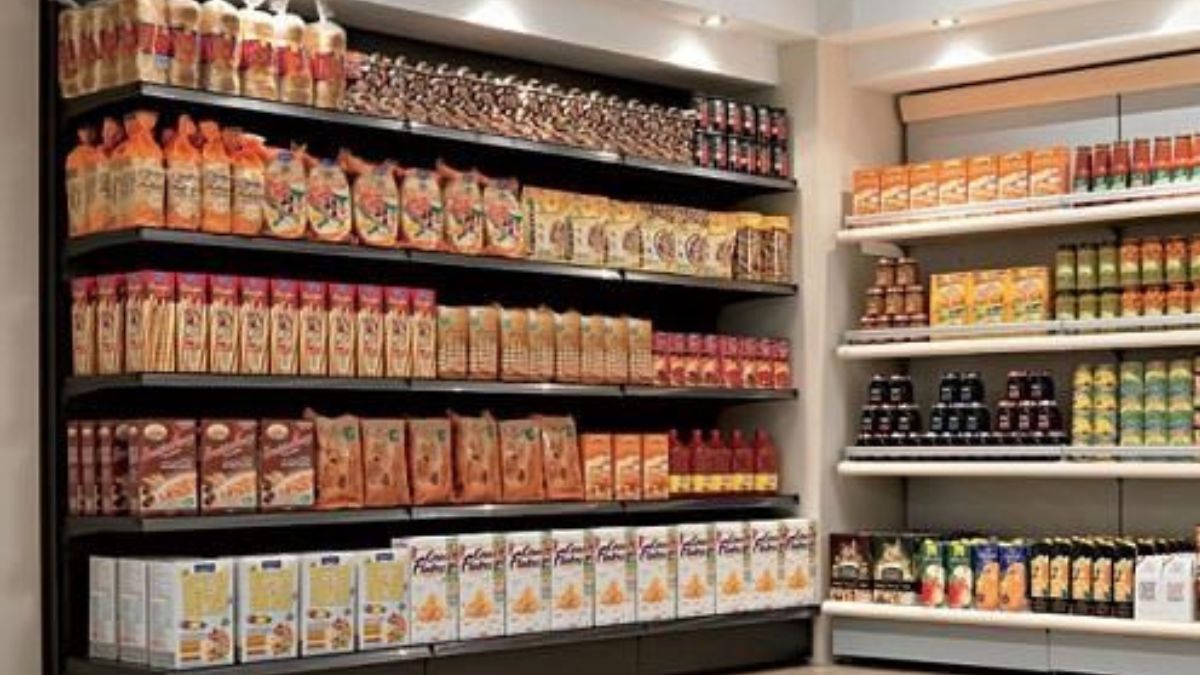 Gondola espositiva in metallo bianco per negozi, 4 ripiani 100x50x200